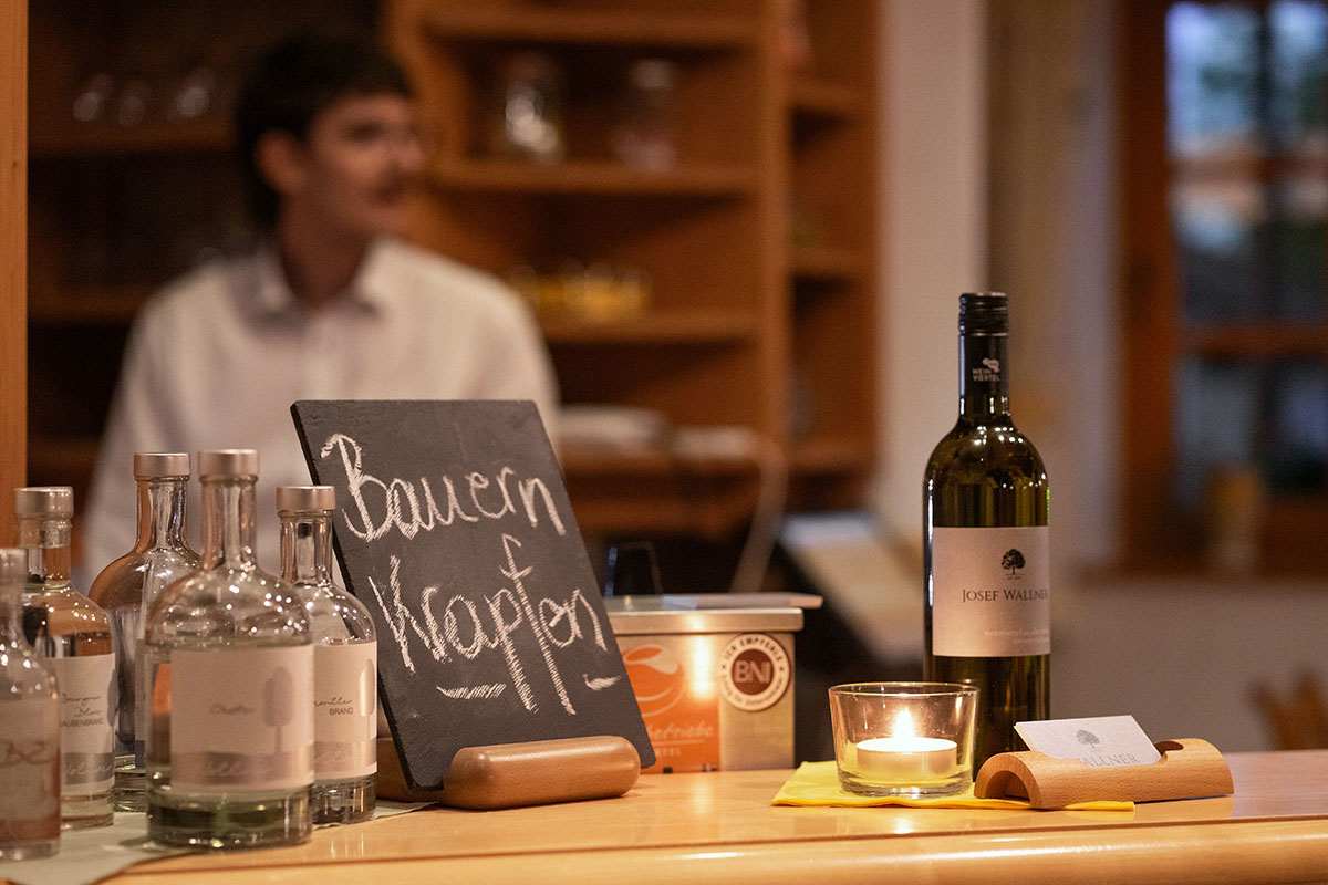 Auf den Tisch kommen regionale Produkte, hausgemachte Mehlspeisen, Säfte, Qualitäts- und Schaumweine sowie Edelbrände aus eigener Produktion.