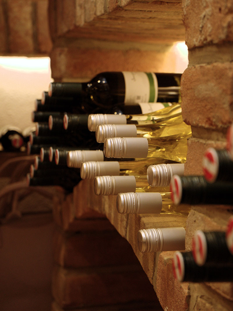 Weiße bleiben je nach Ausbau auf der Feinhefe, werden dann abgezogen und klar ausgebaut. Rote vergären auf der Maische, machen den biologischen Säureabbau und reifen in kleinen Eichenfässern (Barriques) oder Edelstahl.